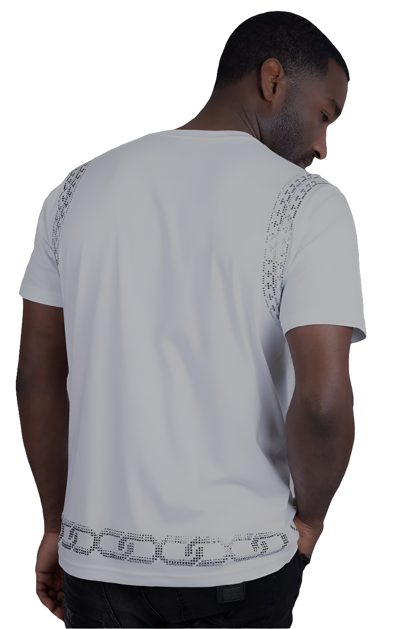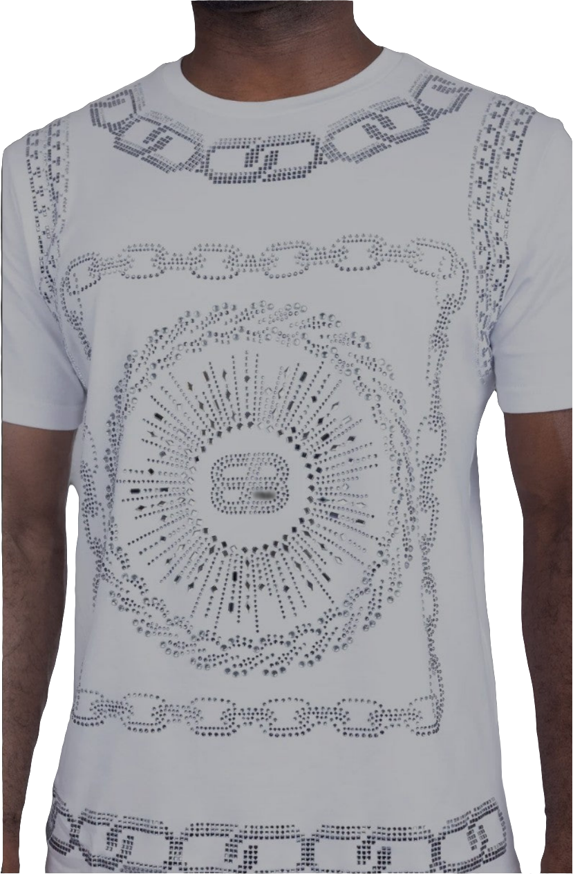 Features include a premium solid color fabric, rhinestone accents in a chain link pattern, and geometric shapes.