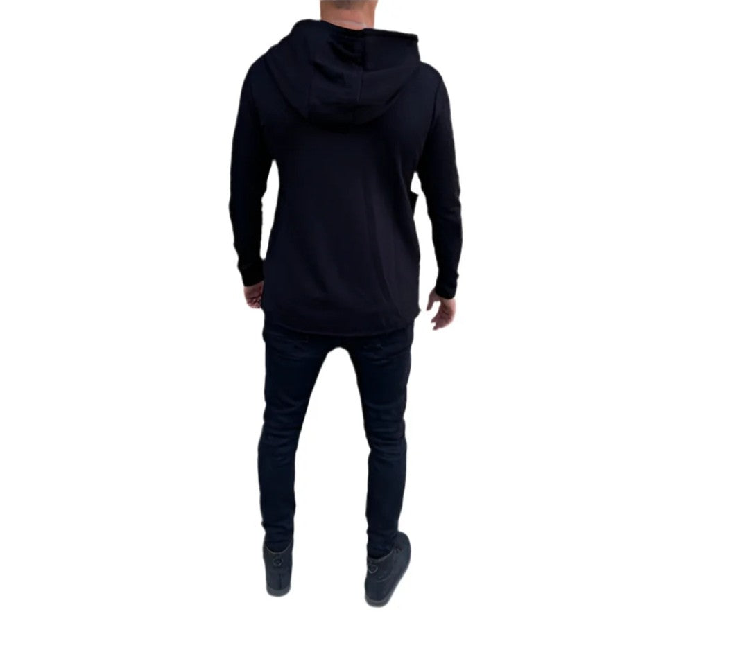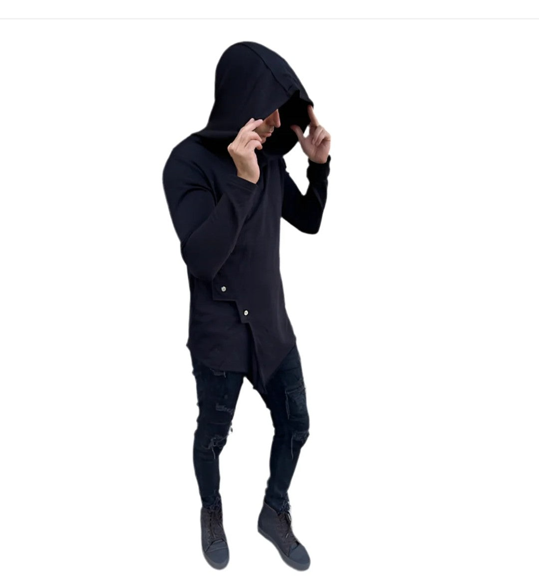 Rock&Roll Black Hooded Cardigan With Diagonal Buttons and Zipper